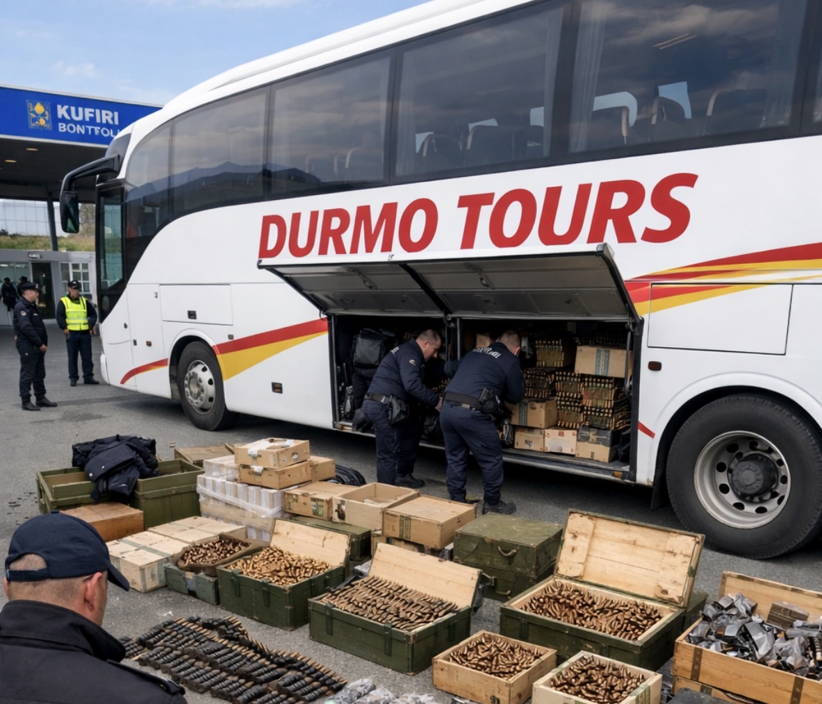 Një autobus që dyshohet se i përket kompanisë Durmo Tours është ndaluar në pikëkalimin kufitar Tabanoc, ku sipas burimeve jozyrtare është zbuluar municion brenda tij, duke ngritur dyshime serioze për një rast të rëndë sigurie.