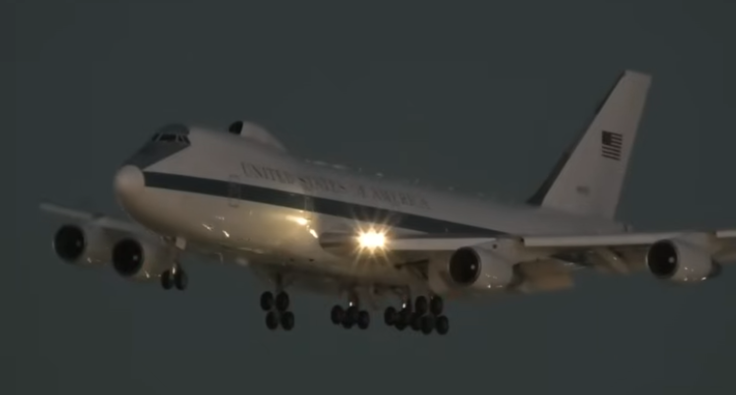Të enjten në mbrëmje, avioni, i përdorur për më shumë se 50 vjet si qendër komande në raste emergjencash, u shfaq për herë të parë në një aeroport civil – Aeroportin Ndërkombëtar të Los Anxhelosit. Prania e tij shkaktoi një valë reagimesh dhe pyetjesh, për shkak të funksionit të tij si seli fluturuese për udhëheqjen politike dhe ushtarake amerikane në rast të një sulmi bërthamor.