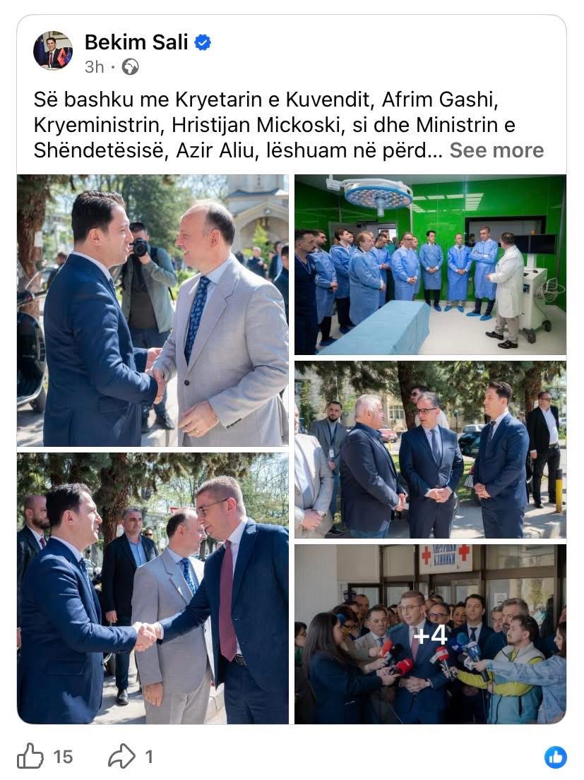 Në kohën kur studentët protestonin për të drejtat e tyre, Zëvendëskryeministri Bekim Sali, i shoqëruar nga miku i tij Afrim Gashi, kishin zgjedhur një tjetër prioritet: të qëndronin përkrah Kryeministrit Mickoski dhe ministrit të Shëndetësisë në prerjen ceremoniale të shiritit për salla (projekte) që në fakt ishin nisur nga ish ministri Arben Taravari.
