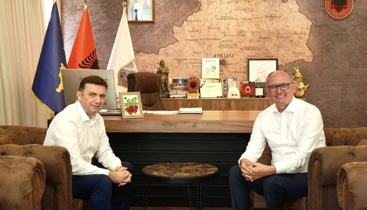 Takimi u mbajt në sheshin qendror të Ferizajt, ku dy zyrtarët biseduan mbi mundësitë për bashkëpunim të ardhshëm ndërmjet komunave që ata përfaqësojnë.
